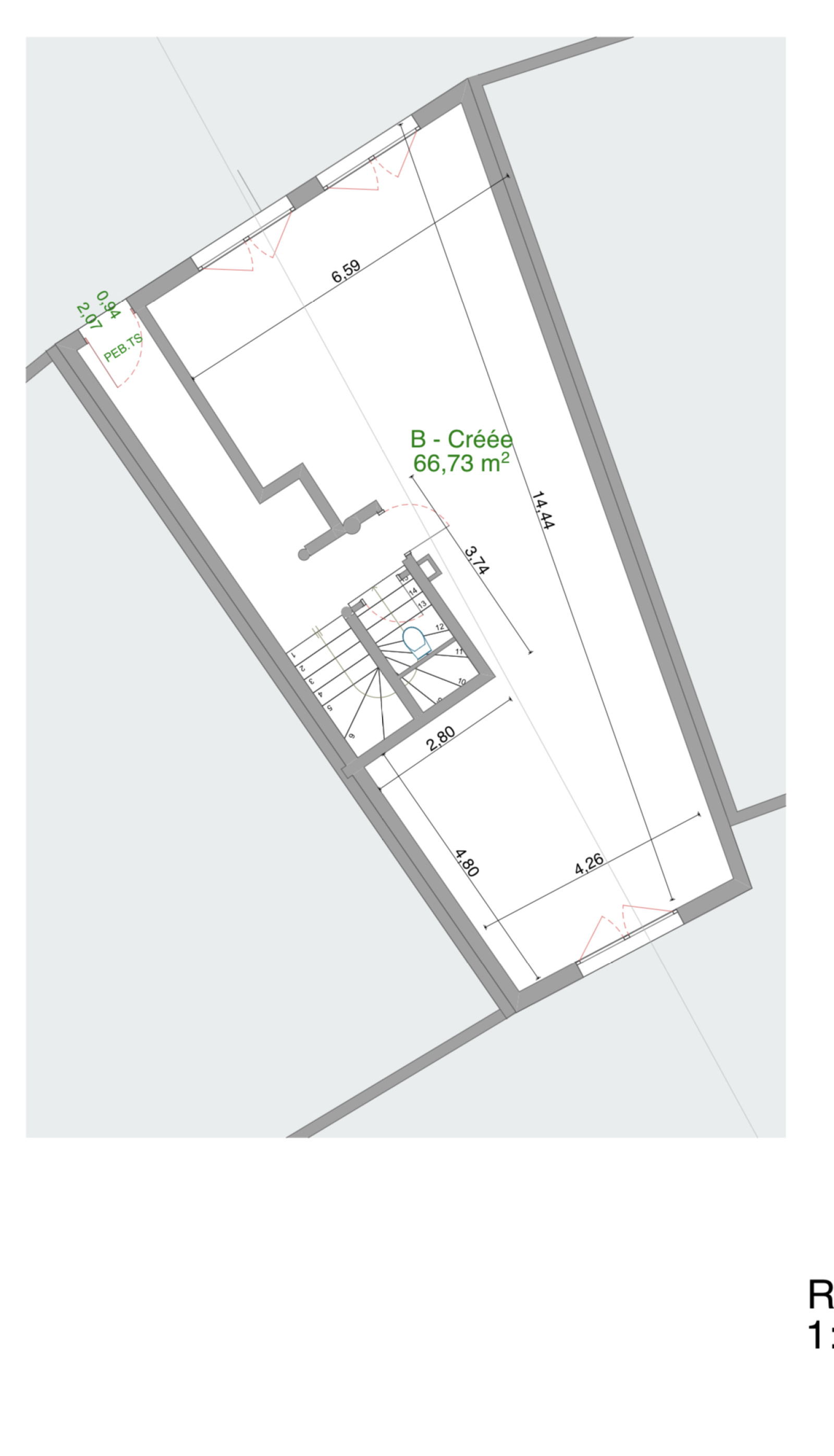 Superficie de 66,73m² de plain pied.